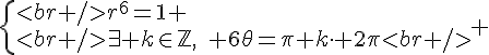Il me semble que ce que tu entends par racine sixième, c’est une fonction définie pour les réels positifs seulement. Cela peut te servir à trouver le module, mais ce n’est pas la partie difficile (on a trivialement r=1). Pour les arguments, je te donne la méthode mais tu ne sembles pas m’avoir lu…