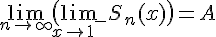 Pour tout epsilon, Il existe un N entier et un Alpha réel, tel que pour tout n> N et pour tout x réel tq |x-1| < alpha on a | Sn(x)- Serie somme(0->inf)(an)|< epsilon.