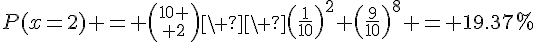 Vu que P= 1/10 la logique veut que la proba que p(X=2) soit inférieure...mais quand je vérifie ça par le calcul des probas pour une loi binomiale je trouve que c'est supérieur !