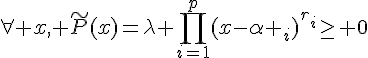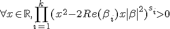 On a donc en particulier pour tout i, le polynôme obtenu en "factorisant les racines conjuguées" est de signe constant strictement positif dans R (par la réciproque du théorème des valeurs intermédiaires: il n'admet pas de zéro donc est de même signe), et par suite,.