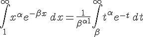 j'ai aussi essayé d'exprimer l'intégrale comme f(x)*-beta.e-beta ou f(x) est un polynome (sauf que les coefficients des puissances sont dans R), pour ensuite essayer de trouver les coefficients avec une méthode d'identification, mais idem, le fait que alpha soit dans R (>1) pose problème...