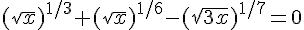racine(à la puissance 1/3)de x + racine(à la puissance 1/6) de x - racine(à la puissance 1/7) de 3x =0