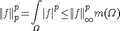 Je présume qu'il manque un alpha devant la norme infinie. Si E est un ensemble de fonctions intégrables définies sur une partie de mesure finie , on peut remarquer que .