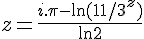 Résoudre : 1/3^z + 1/2^z + 1 = 0