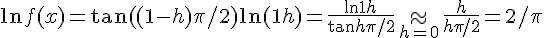 Je ne sais pas si vous avez avancé, votre tan((pi/2)(1-h)) pout être précis, devient cotan((pi/2)h) est peut se développer autour de zéro.