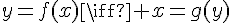 Autrement dit, on résout l'équation y=f(x) d'inconnue x et la solution (unique si f a bien une réciproque) donne l fonction g. Bien entendu, y est une lettre, représentant un nombre quelconque qui est une image par f; donc on a besoin de savoir quelles sont les valeurs prises par f(x) quand x varie dans Df.