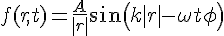 avec l'amplitude de f le rayon vecteur (m) la pulsation (rad.s-1) le déphasage (rad) le vecteur d'onde (m-1)