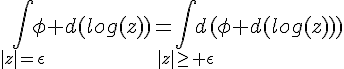 Je calcule donc l'intégrale en utilisant la définition de l'opérateur de Cauchy Riemann et le passage aux coordonnées polaires (je calcule l'intégrale sur {r>epsilon} pour faire tendre epsilon vers 0 par la suite).