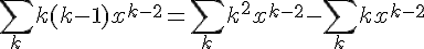 j'ai compris pour la somme des k x^(k-1) (en dérivant la somme des x^k = 1/(1-x) ), mais je n'y arrive pas pour celle là..