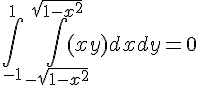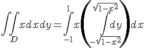ta première intégrale s'écrit par définition des intégrales doubles : Donc ce n'est pas x qu'on intègre de -1 à 1 !!! Cordialement.