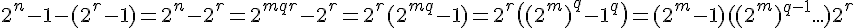2) démontrer que (2^r)-1 est le reste dans la DE de (2^n)-1 par (2^m)-1