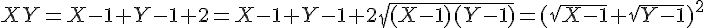 Nous avons (X-1)(Y-1)=1 donc XY=X+Y=X-1+Y-1+2, si tu as d'autres questions...