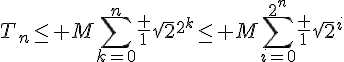 Tn < M sum(1/sqrt(2)^(2^k), k = 0 .. n) j'ai tenté plusieurs choses mais je n'arrive pas à me séparer de n pour majorer, pouvez-vous me donner une idée pour continuer ?