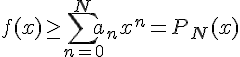 - f est croissante surpar positivité de la suite (an) et continue sur cet intervalle (son intervalle de convergence) donc elle admet une limite