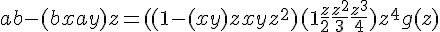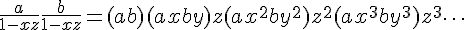 dans la première égalité, remplacer b/(1-xz) par b/(1-yz) ; dans la première relation avec xy et x+y, remplacer -(x+y) par -(x+y)/2.