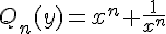 Montrer qu'il existe une suite unique Qn de K[X],à coefficients entiers, telle que pour tout x appartenant à K* et pour tout n de N : x^n+1/x^n=Qn(y), où y =x+1/x et deg Qn=n (on en profitera pour écrire une relation de récurrence entre Qn, Qn+1 et Qn+2)