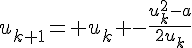 Bon si j'ai bien compris j'ai juste à écrire u_{k+1}= u_k -\frac{u_k^2-a}{2u_k}