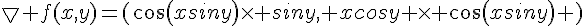 Je dois trouver également le gradient ensuite de f(x,y)=sin(xsiny)) j'ai trouvé (siny²cos(xsiny),xcosy) est ce bon?