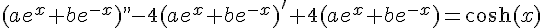 y''-4y'+4y=cosh(x) le polynôme caractéristique admet une solution double: r=2 donc la solution générale de l'équation sans second membre est: