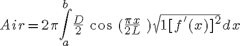 Si je vous raconte tout ça, c'est que j'ai des doutes sur ce résultat (et donc sur ma démarche) parce que cette aire "analytique" ne vérifie pas l'aire que je trouve par l'intégration "graphique" que j'ai réalisée dans Excel (en considérant la surface à intégrer comme constituée d'une série de troncs de cônes) : il y a trop d'erreur (quelques %) entre l'aire analytique et l'aire "graphique", du moins pour les rapports L/D faibles (autour de 2).