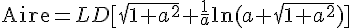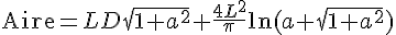 Aire = LD Racine(1+[Pi D/(4L)]² ) + 4L²/Pi Asin[Pi D/(4L)]