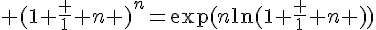 un = (1+1/n)^n = e (n*ln(1+1/n))