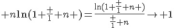 lim n*ln(1+1/n)) =1 (je vois pas comment)