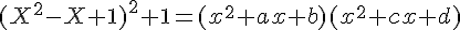 Bonsoir je dois factoriser dans R et dans C le polynôme suivant P=(X2-X+1)2+1