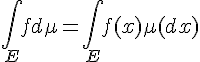sur le wiki anglais(https://en.wikipedia.org/wiki/Lebesgue_integration)Soitun espace mesuré. une intégrale selond une mesure se note :