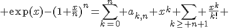Où on n'a pas modifié les coefficients a_{k,n} et les 1/k! qui sont positifs. On a: