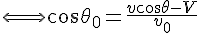 Pour moi une particule se dépalce très vite. Donc v_0 est très grande devant 1. Dans mon esprit tordu je décide que mon système de référence se dépalce aussi très très vite. Dans ce cas, je choisis un théta de sorte que v_0cos(\theta) + V = 0 et paff le mateux n'aime pas!