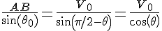 . Soit C l'unique point (je vous laisse le soin de comprendre qu'au vu de la définition de theta_0, on a que C existe) tel que l'angle BCA = \theta_0 (ici on ne prend que des angles mesuré dans le sens trigonométrique ^^). On note alors V la longueur OC, et V_0 la longueur AC. Par définition, OAB est un triangle. La relation des sinus donne: