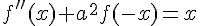 Je suis un peu bloquée...pour essayer d'avancer un peu j'ai envisagé les cas f paire et f impaire...ça revient bien à résoudre respectivement les équations y"+a2y=x et y"-a2y=x, non ?