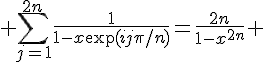Dire que la formule qui vous emb\^ete n'est autre que la décomposition en éléments simples de 2nx^{2n-1}/(x^{2n}-1)....