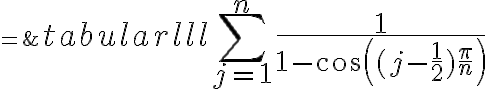 1/(1-cos (j-1/2)*pi/n + 1/(1+ cos (j-1/2)*pi/n) = ((1+ cos (j-1/2)*pi/n) + (1-cos (j-1/2)*pi/n))/(1+ cos (j-1/2)*pi/n)(1-cos (j-1/2)*pi/n)
