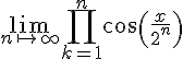 le produit de cos( x / 2^n ) avec n tendant vers l'infini est sin(2n)/2n ( Briot 1849 )