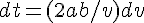 f(x) = A.v^2 + Bv+ C qui décrit une parabole de freinage depuis une vitesse V0 jusqu'a la vitesse V=0.
