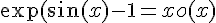 exp(sin x) - 1. je sais que exp (x) - 1 ~ en 0 à x, et sin x est équivalente en x à x. Donc, on peut considéré la fonction u(x)=sin (x) et la fonction composée exp(u)-1 ? Et ainsi conclure que exp(sin x)-1 ~en0 à x PAR COMPOSITION DE FONCTIONS EQUIVALENTES ?