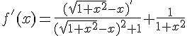 Je sais que la dérivée de arctan(u) est u'/(1+u); Mon gros problème c'est dériver arctan(racine(1+x2)-x), je n'arrive pas à le simplifier, j'ai un truc avec plein de racine...