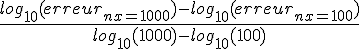 Je calcule l'erreur pour les trois schémas avec la relation suivante :. J'ai l'erreur pour un nombre de points variant de 100 à 1000 par pas de 100 et j'estime l'ordre avec :