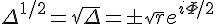 alors je cherche les racines carrées de Δ, avec un système : (x+iy)²=8 cosθ exp(iθ)