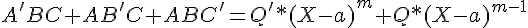 Voila on se place dans C[X] et on considère A, B et C 3 polynômes non constants de C[X] premiers entre eux deux à deux tels que A+B=C. On pose D= AB'-BA'. On me demande de montrer que si on considère u une racine du polynôme ABC de multiplicité m il faut que je montre que u est racine de multiplicité m-1 de D. J'ai traduit les hypothèses on a alors/ABC et