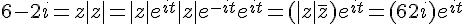 + |z| = 6 + 2i (1) et on me demande de trouver la forme algébrique de z ensuite je pense qu'on peut dire que a-ib+|z|=6+2i donc a+2i+|z|=6+2i et |z|²=6²+a² avec z=a+ib