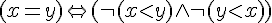 Alors donc j'ai écrit les deux axiomes des ordres stricts, une formule pour la densité de l'ordre et une pour l'existence d'un plus petit et une autre pour l'existence d'un plus grand élément. Il me reste donc à écrire une formule pour impliquer l'existence d'au moins 2 éléments, mais je n'y arrive pas.