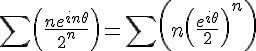 mais pour la somme je ne comprend pas car si on fait le lien avec les séries entieres, on a pas une expression de la forme an*zn, amoins de prendre zn avec z=1.