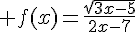 Alors pour f(x), pour le numérateur on a 3x-5 > ou= à 0,d'ou x>ou= à 5/3 et l'ensemble de définition du numérateur