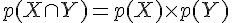 on considere deux evenements independants A et B, de probabilites respectives 1/4 et 1/3, et on sait deja que si A et B sont independants alors que A et Bbar sont independants et Abar et B sont aussi independant, et que la probabilite d'intersection de deux evenements independants est la multiplication de leurs probabilites {P(A inter B)=P(A)*P(B)}, donc la question: P{(A inter Bbar)inter(Abar inter B)} egale-t-elle a P(A)*P(Bbar)*P(Abar)*P(B) ou bien a 0?? si elle est egale a 0 pour quoi??
