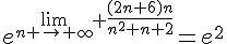 Jaimerai de laide pour lim (n--->infini) [ (n^2 +3n+8) / (n^2 +n+2) ] ^n