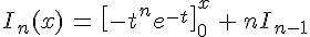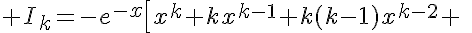 ce qui ruine tout espoir d'intégration par parties... du moins toute tentative trop directe. Bien sûr, cette récurrence est exploitable, mais je voudrais une formule "fermée", i.e. qui ne dépende que de t et k (et de exp(-t), naturellement).