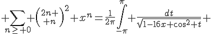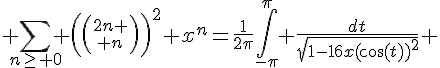 La somme en question, pour n=0 à l'infini, est égale à (2/pi)*K(16*x)
